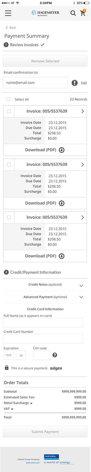 As the above images show, frequently, an existing version of a feature is already in production that needs to be upgraded to a new platform. In this instance, a prior version required upgrading from Hybris 4.x to 5.x. The current version consisted of a 4-step process that was in bad need of a cleaner user expereince; an "overhaul". The process of improving an existing UI involves discovering problem areas that can be simplified and uncovering easier ways to get from point A to B in the user journey.
