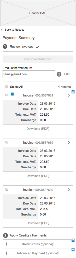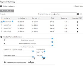Assumptions: The user described here is assumed to be an authorized user having the rights to pay his open invoices online. The user described here is assumed to be logged in to the webshop For scenarios that use Credit notes: The user knows beforehand all credit note numbers.